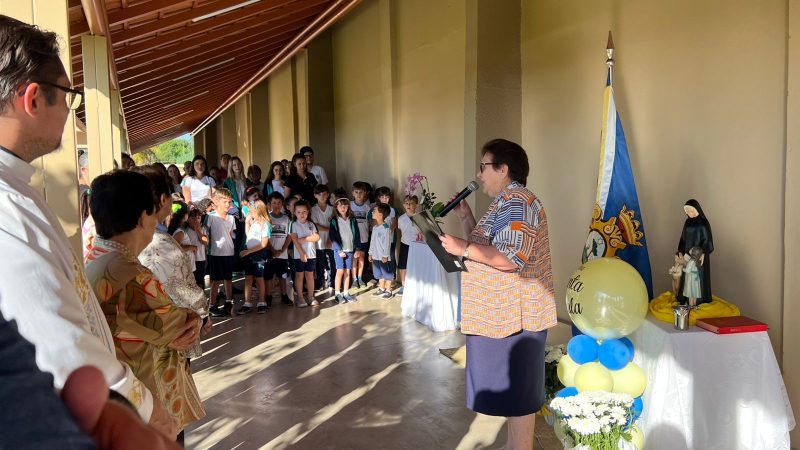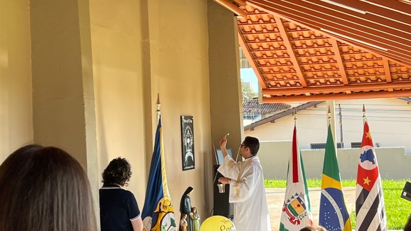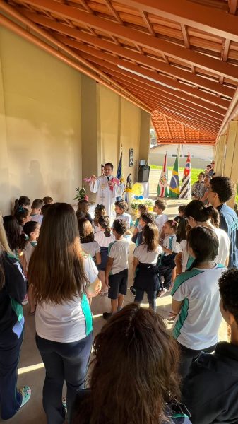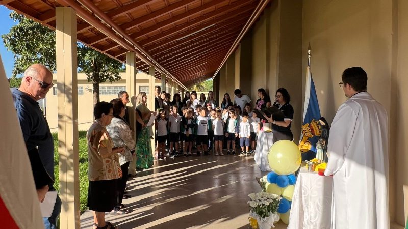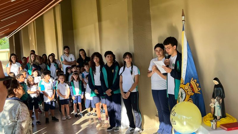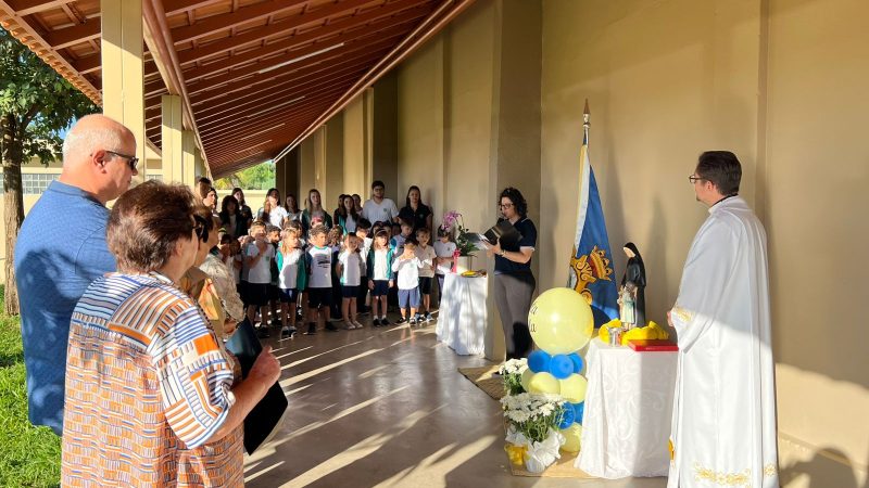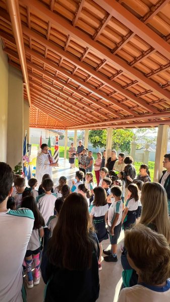 Para abrilhantar ainda mais este momento, as crianças do 1º ano do Ensino Fundamental, acompanhados da Professora Tayane, fizeram uma apresentação, cantando músicas em homenagem à Santa Paula.