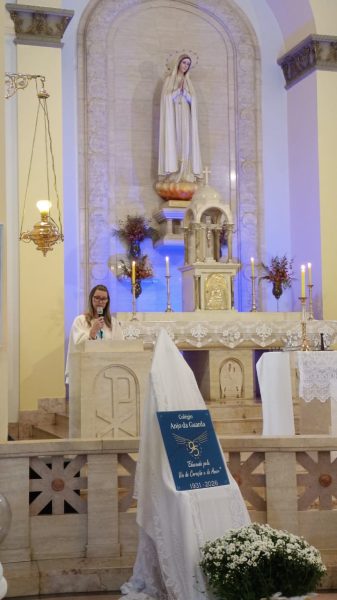 Neste ano tão significativo, nossa celebração torna-se ainda mais especial ao nos unirmos também para celebrar o aniversário natalício de nossa querida Irmã Cecília. Sua vida, doada com generosidade à missão educativa, é sinal concreto do amor que educa, do coração que acolhe e da fé que inspira. Irmã Cecília faz parte desta história viva, deixando marcas de ternura, dedicação e serviço, em profunda sintonia com o carisma que sustenta o Colégio Anjo da Guarda.