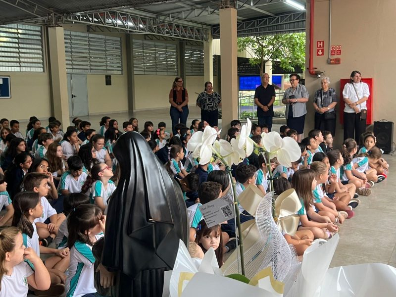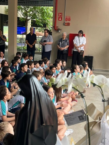 Na quarta-feira, dia 29 de outubro, integrantes do Grêmio Estudantil, alunos do Ensino Fundamental I, juntamente de seus professores, Coordenação e Direção, representando toda a comunidade escolar do Colégio Anjo da Guarda, manifestaram, com um gesto de acolhimento, nossa alegria pela presença tão especial, em nossa casa, das Irmãs Maria do Socorro Lopes Souza – Coordenadora Provincial – e Lourdes Pires – Conselheira Provincial –, continuadoras incansáveis da Missão de Paula a serviço da construção do reino de Deus.