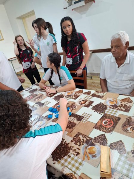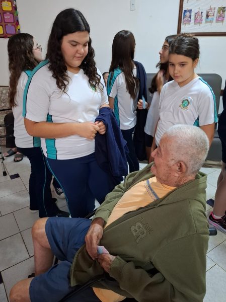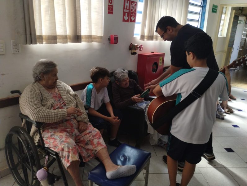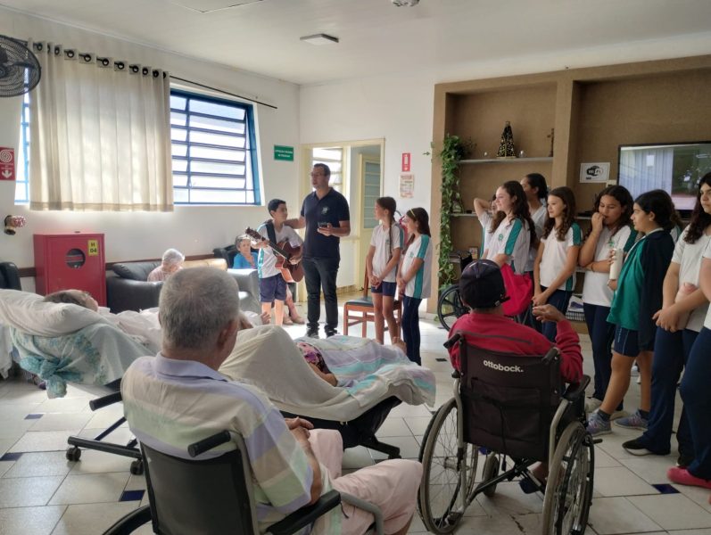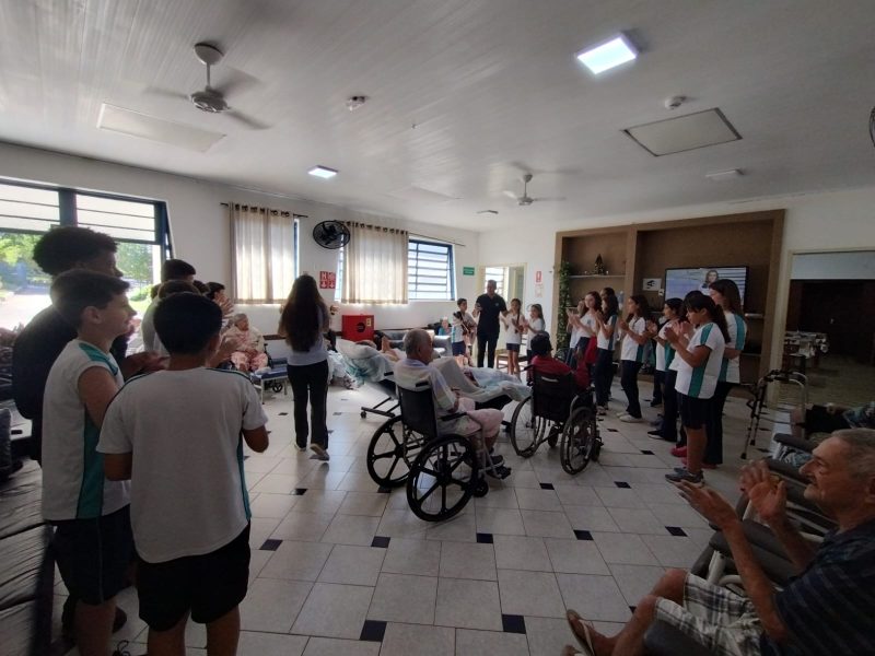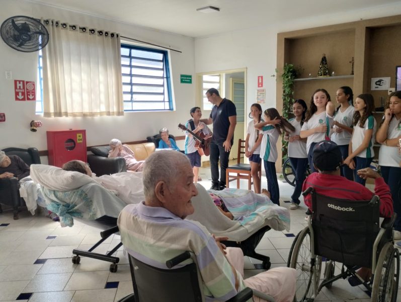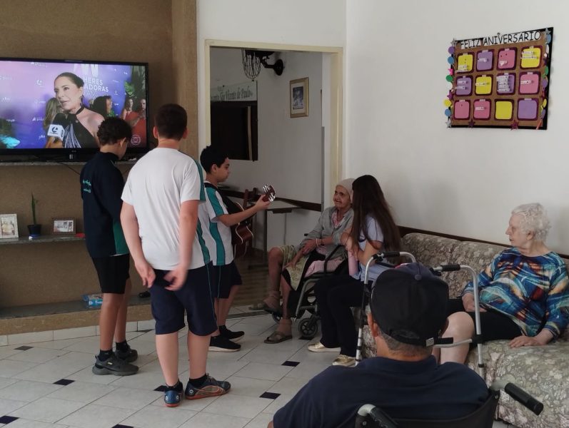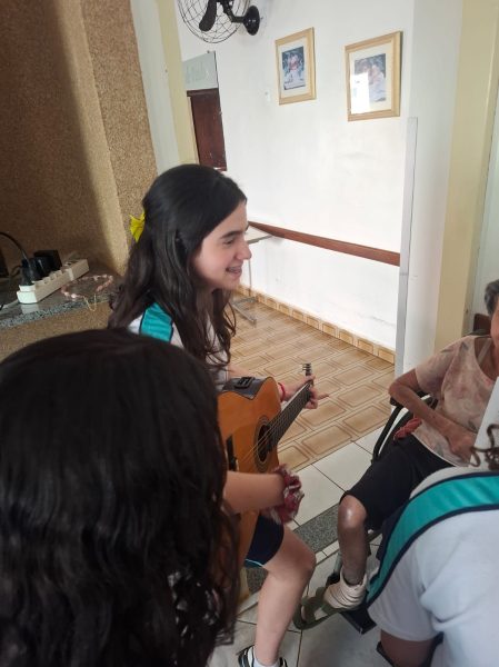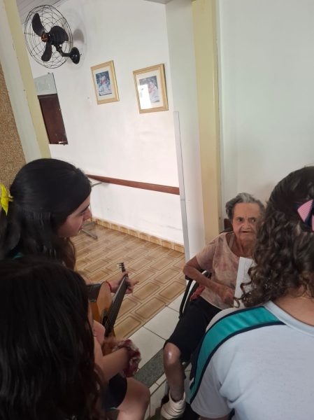 A música também esteve presente, tornando os encontros ainda mais alegres e emocionantes. Entre cantos, conversas e partilhas, nossos alunos compreenderam que a missão se faz com simplicidade: no cuidado, na presença e na vontade de transformar o dia de alguém.