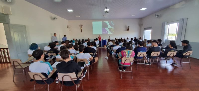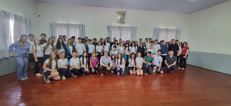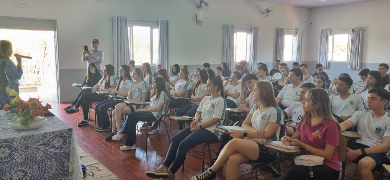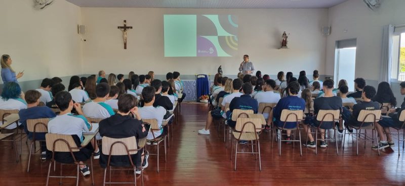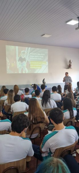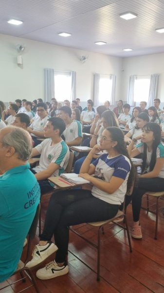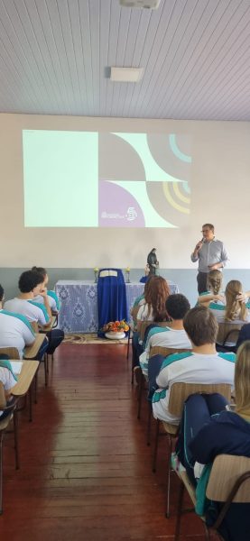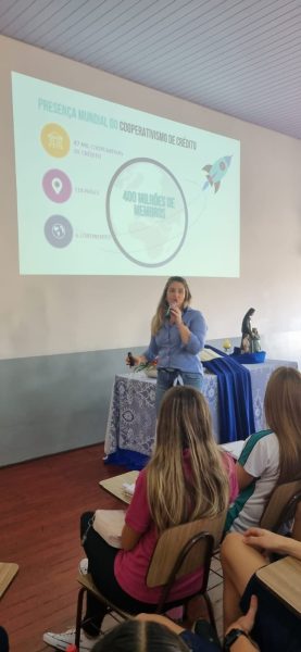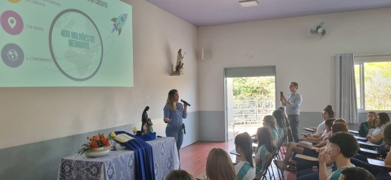 Na quinta-feira, dia 02 de outubro, os alunos do Ensino Médio receberam a visita de colaboradores da Cooperativa de Crédito Credicitrus – Gledson Gustavo Viana (Gerente de Responsabilidade Social, Daniel de Miranda Nogueira (Analista de Responsabilidade Social) e Carolina Cardoso Serotine (Analista de Atendimento ao Associado) – para conversarem sobre Cooperativismo.