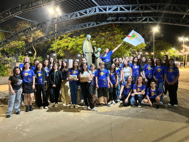 Ao chegar à praça, os jovens participaram de um momento de reflexão e oração, no qual foi lida uma carta inspirada nas palavras de Santa Paula Frassinetti. Motivados pelo exemplo da Mestra, seguiram o convite de “ir ao encontro do outro” com alegria e generosidade.